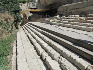 Tuesday, April 6th – GALILEE –We journey to the GOLAN HEIGHTS, stopping to see the ancient ruins of Hippos and then to see the archaeological site of TEL DAN and the waters of Mt. Hermon flowing in the Dan river (a head water to the Jordan River) with a nearby gate from Abraham’s time and the high place of Jeroboam and then CAESAREA PHILIPPI (palace of Herod Philip and Temple of Pan). We may stop and shop for fresh cherries and nectarines, and other fruit at a local market. We end our day at the Jordan River for a baptismal service at YARDENIT. Enjoy a boat ride with Israeli music and dancing on board to a special dinner on the Sea of Galilee at the DECKS RESTAURANT. . Return to overnight at our hotel.